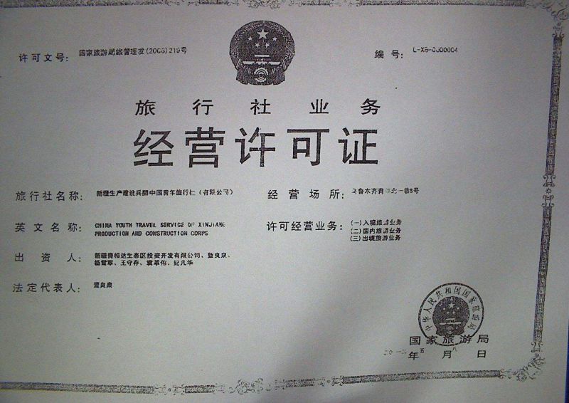 旅行社经营许可证相当于工商局注册公司,经营范围里的(涉及经营许可的凭许可证经营)里面的前置许可。