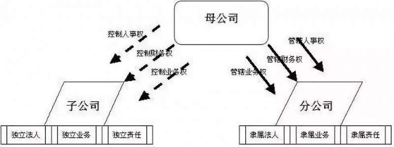 (3)受控制方式不同。母公司对子公司一般不直接控制,多采用间接控制方式,即通过做出投资决策以及任免子公司董事会成员来影响子公司的生产经营活动。而分公司则不然,其财产、业务、人事受总公司直接控制,并只能在总公司的经营范围内从事经营活动。