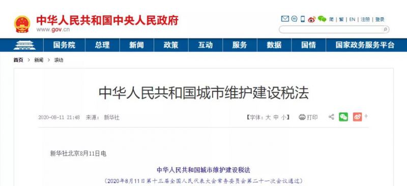 9月1日起,《中华人民共和国城市维护建设税法》和《中华人民共和国契税法》两大税法正式开始施行。